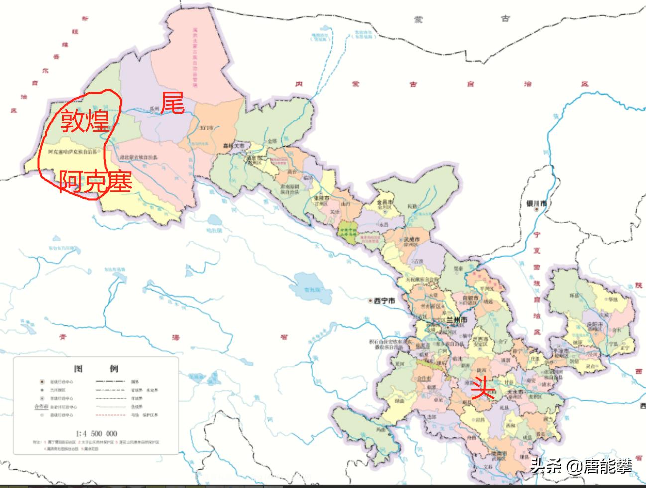 肃北蒙古族自治县 面积55000平方千米,人口1万。